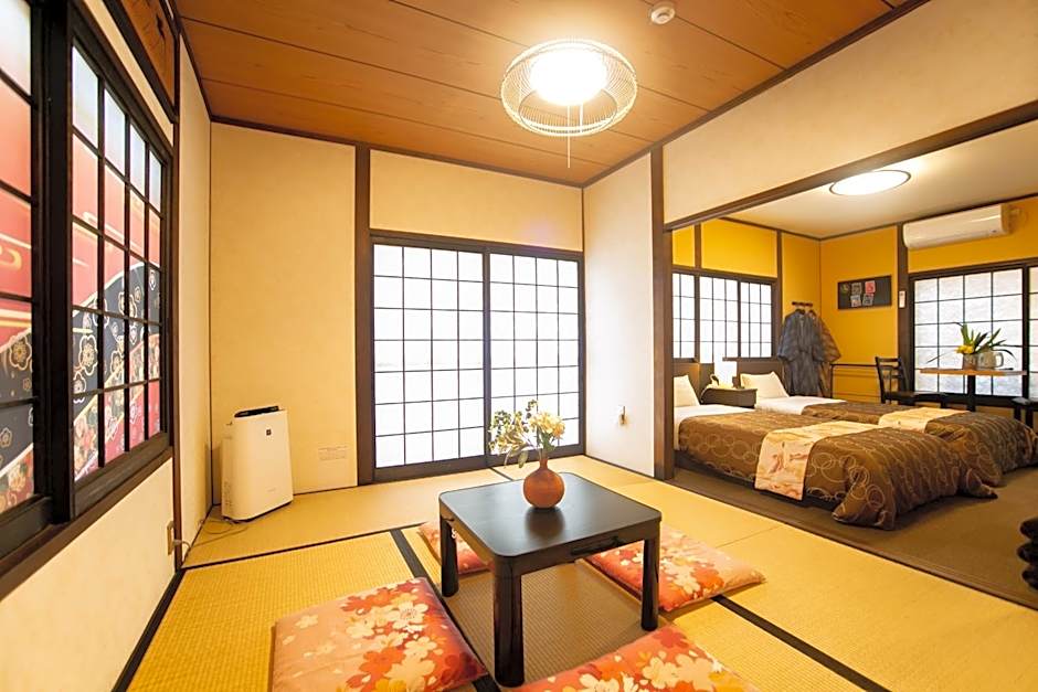 The family room offers air conditioning, tatami, as well as a private bathroom featuring a shower and a hairdryer. The family room comes with a flat-screen TV, an electric kettle, yukata, as well as heating. The unit offers 2 beds and 3 futons.